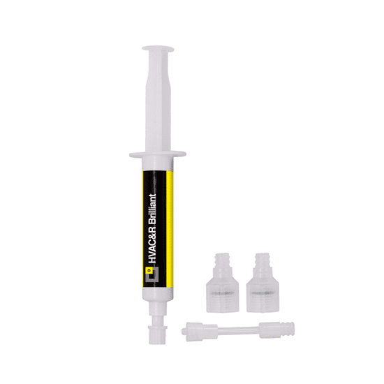 Detektor Brilliant HVAC&R omogućuje vam brzo i precizno lociranje curenja rashladnog plina; umetnut u krug rashladnog sredstva blizu mjesta curenja, izlazni proizvod će se istaknuti pomoću UV svjetiljke. Kompatibilan je sa svim rashladnim plinovima CFC, HFC, HCFC, HFO, CO2 i ugljikovodicima (uključujući R12, R134a, R1234yf, R407c, R22). Ne sadrži otapala i nije toksičan.