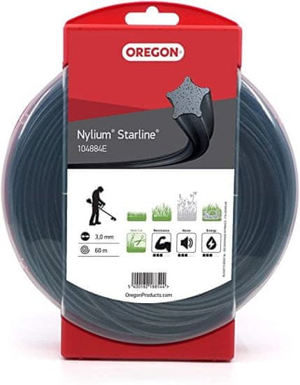 Oregon Naylon Nylium konac u obliku zvijezde pogodan za motorne i električne dijelove. Odlikuje se visokom otpornošću na međusobno zavarivanje niti i izuzetnom otpornošću na trošenje. Promjer iznosi 3 mm i duljina 60 m. Cijeli opis