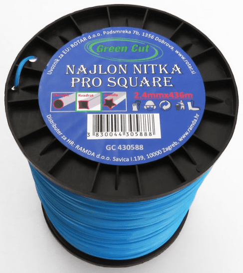 Najlonska nit kvadratnog oblika promjera 2.4 mm i duljine 436 m. Cijeli opis