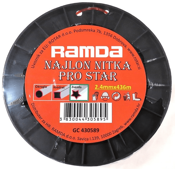 Najlonska nit zvjezdastog oblika promjera 2,4 mm i duljine 436 m. Cijeli opis