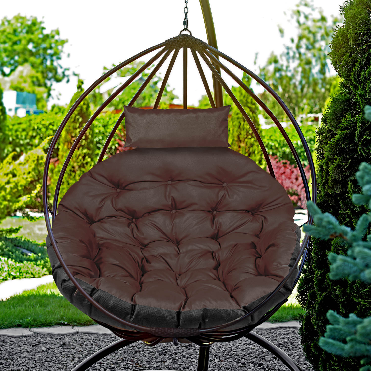 AIO FACTORY Vrtna blazina 120 cm iza viseči stol, štorkljino gnezdo, vodootporan, rjava