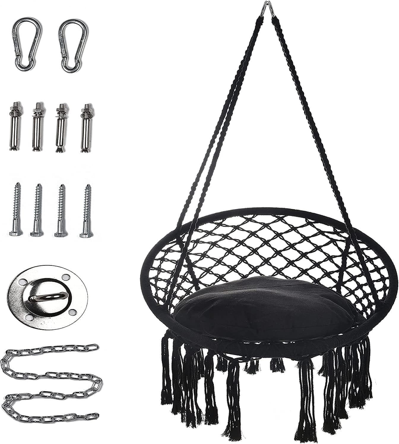 Nikcorp Moderna viseća stolica makrame s priborom za montažu, crna (86x60 cm), nosivost 100 kg, pamučna ljuljačka za dom i vrt