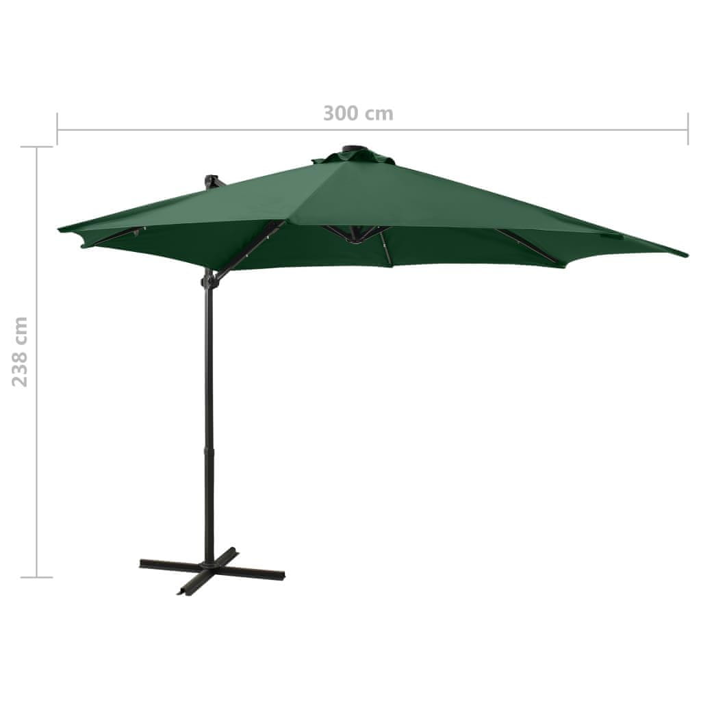 Vidaxl Konzolni vrtni suncobran sa stupom i LED svjetlom 300 cm zeleni