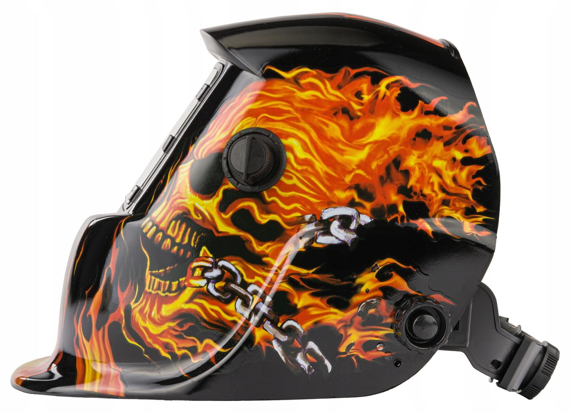 Zahvaljujući ugrađenom solarnom panelu, ova maska automatski prilagođava razinu prigušenja prema intenzitetu svjetla, omogućujući zavarivaču nesmetan rad bez potrebe za ručnim podešavanjem. Motiv plamteće lubanje na maski zasigurno će privući pozornost i dodati dašak individualnosti vašem radnom okruženju.Maska je opremljena udobnom trakom za glavu koja omogućuje podešavanje veličine i pouzdanim sustavom pričvršćivanja koji osigurava sigurno i stabilno nošenje tijekom postupaka zavarivanja. Osim toga, maska je izrađena od izdržljivih materijala koji osiguravaju dug vijek trajanja i pouzdanu zaštitu od iskrenja i UV zračenja.Nemojte više čekati, odaberite solarnu masku za zavarivanje s motivom plamteće lubanje i zakoračite u svijet zavarivanja sa stilom i zaštitom kakvu zaslužujete.Profesionalna samozatamnjujuća maska za zavarivanje dizajnirana za zavarivanje metodama kao što su MMA (SMAW), MIG, MAG/CO2, TIG, zavarivanje pod praškom (SAW), zavarivanje plazmom (PAW), rezanje plazmom (PAC). TIG zavarivanje (niska struja) moguće od ≥35A (DC) / ≥35A (AC).