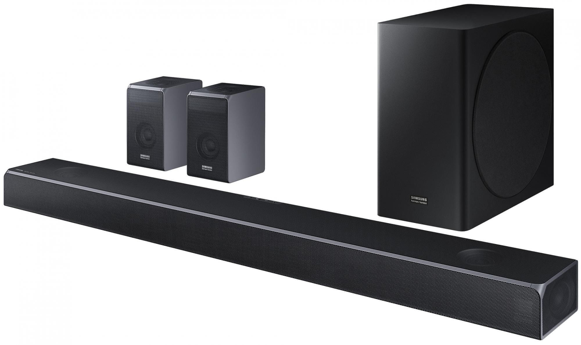 Soundbar20,32 cm (6,5") aktivnim bežičnim subwooferom. Ukupna snaga zvuka 360 W, set kanala 3.1.2, 9 zvučnika, Dolby Atmos, Dolby TrueHD, DTS:X, Q Symphony, podrška za rezoluciju 4K * * i HDR 10+, zvuk dodira, Bluetooth 4.2. Povezivanje 2 × HDMI 2.0 (eARC, CEC) (1 x ulazna, 1 × izlazni), digitalni optički audio ulaz. U paketu je i **zidni držač.