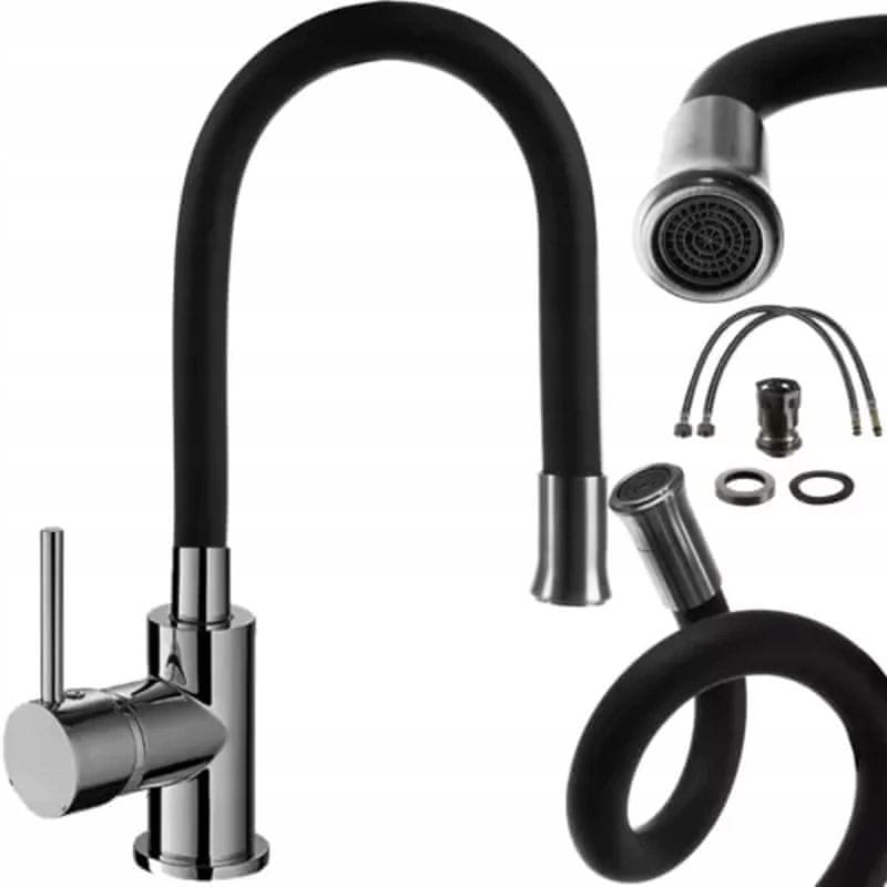 •  FLEKSIBILNO OKRETANJE ZA 360 STUPNJEVA – omogućuje vam slobodno podešavanje izljeva za 360 stupnjeva, što stvara udobnost pri korištenju. Možete ga vrlo precizno prilagoditi visini i volumenu protoka vode. Omogućuje nesmetano točenje vode, npr. u veliki lonac. Fleksibilni izljev također je izvrsno rješenje kada nema mjesta za sudoper s više odjeljaka. Također će biti sjajno za sudopere smještene ispod prozora; neće biti problema pri otvaranju.