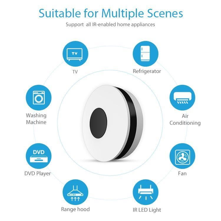 IR daljinski upravljač Secutek Smart WiFi SRT-S02 je univerzalni daljinski upravljač prikladan za sve pametne kuće. Zamjenjuje daljinske upravljače za sve uređaje koji imaju ugrađeno daljinsko upravljanje. Može se koristiti, na primjer, za televizore, zvučnike, klimatizacije, pametne žarulje ili zavjese. Sve udobno upravljate putem aplikacije na vašem telefonu.