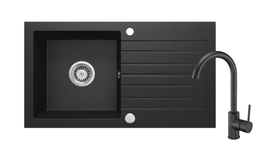 Set je izrađen od granitnog kompozita, koji je kombinacija kvarcnog pijeska i smole u savršenom omjeru, tako da je otporan na udarce i visoku temperaturu do 250°C, promjenu boje i toplinski šok . Osim toga, oni ne upijaju neugodne mirise i imaju hidrofobna svojstva, zbog čega odbijaju čestice vode.