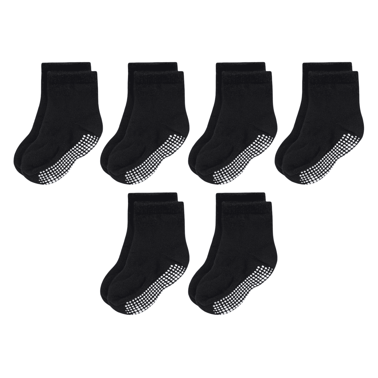 Nikcorp Protuklizne čarape za bebe, 6 pari, pamučne za sigurno puzanje i prve korake, za dječake i djevojčice, crne, 1-6 mjeseci