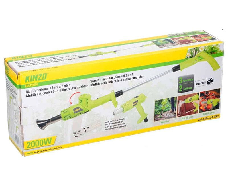 Kinzo Garden 3u1 električni plamenik za korov, 2000W, 550l/min, do 360°C, kabel 100cm, zeleni