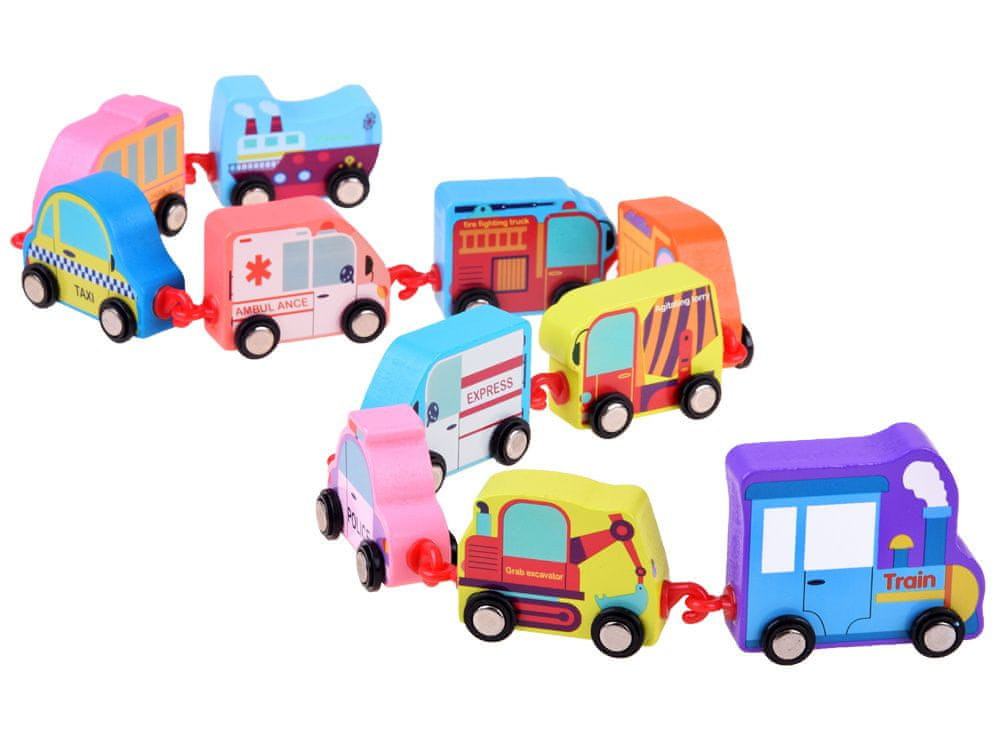 Šarena drvena vozila je edukativni set za djecu koji ih uči prepoznavati automobile, vozila koja često susrećemo na ulici.
