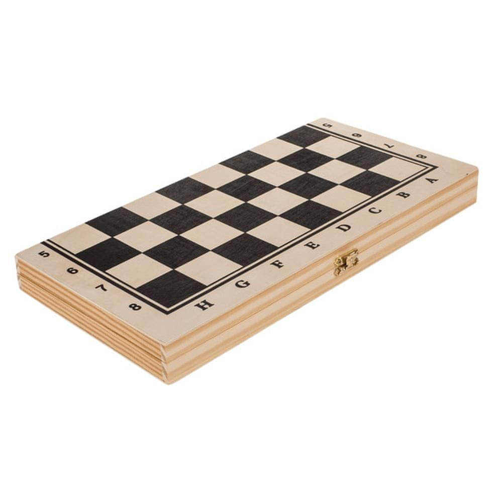 Set također uključuje drvene šahovske figure koje su izrađene s preciznošću i pažnjom za detalje. Svaka je figura ručno izrađena i oslikana, što joj daje jedinstven i elegantan izgled. Figurice su dovoljno velike da se udobno kreću po ploči, ali u isto vrijeme dovoljno čvrste da se ne prevrnu tijekom igre.Sklopivi dizajn šahovske garniture olakšava pohranu i nošenje. Šahovnica se može preklopiti na pola, što omogućuje sigurno pohranjivanje figura i praktičnost pri nošenju garniture na putovanja ili piknike. Uz ovaj šahovski set moći ćete uživati u igri šaha bilo gdje i bilo kada.Izazovite sebe i svoje prijatelje na klasičnu stratešku igru s drvenim šahovskim setom za djecu i odrasle — odličan način za poticanje strateškog razmišljanja i poboljšanje kognitivnih funkcija. Šah je strateška igra izvedena iz drevne indijske igre Chaturanga. Igra se na kockastoj ploči sa 64 polja raspoređenih u mrežu 8×8 – za razliku od igara koje izazivaju uzbuđenje, promiče sabranost, smirenost i promišljenost. Dizajniran za zabavne trenutke igre, naš šahovski set je napravljen posebno za entuzijaste – mlade i stare! Provedite nedjeljne večeri ili gotovo bilo koje vrijeme družeći se sa svojom obitelji uz partiju šaha!