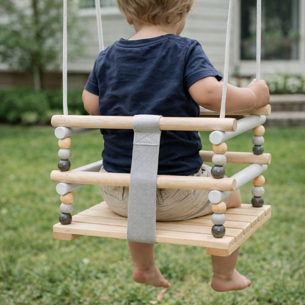Ovo drveno ljuljačko za bebe u skandinavskom stilu spaja minimalistički dizajn, prirodne materijale i sigurnost koju vi, kao roditelj, zaista cijenite. Savršeno za te prve trenutke ljuljanja – u zatvorenom ili na otvorenom.