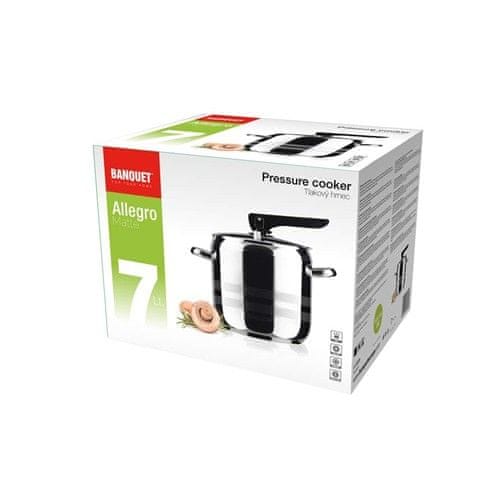 Ekspres lonac od nehrđajućeg čelika ALLEGRO Mat 7l ima dodatnu ručka, 2 ventila, snažnu strukture donjeg dijela i debljinu dna 0,6 mm. Poklopac ekspres lonca ima dodati glavni i pomoćni ventil i kuhanje osigurava maksimalno sigurno rukovanje!