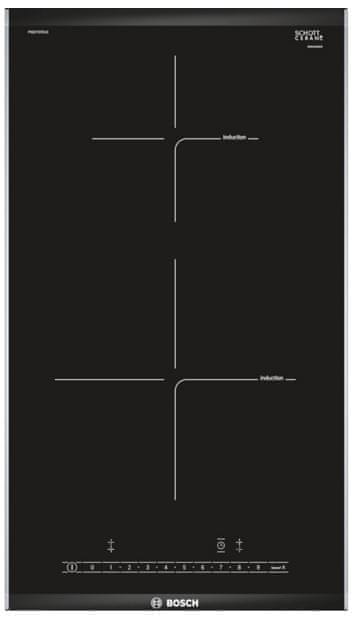 Indukcijska ploča za kuhanje Bosch PIB375FB1E s dva polja za kuhanje ima DirectSelect upravljanje i 17 stupnjeva snage. Odlikuje ju PowerBoost tehnologija za veću snagu rada. Ima timer i ComfortProfil elegantan dizajn.