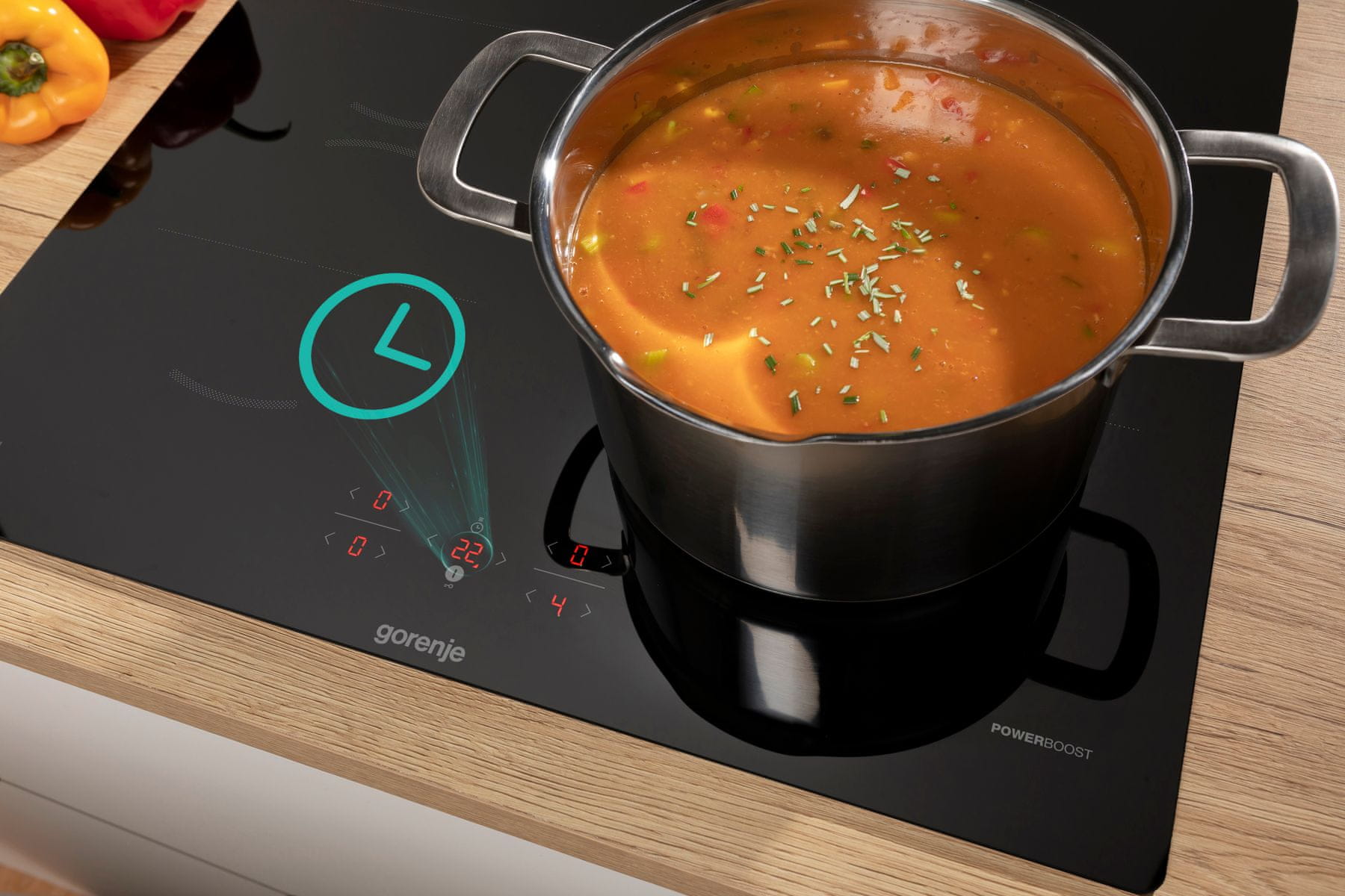Funkcijom timera možete birati vrijeme i snagu kuhanja za svaku zonu posebno, a PowerBoost funkcija omogućuje rad s povećanom snagom i značajno skraćuje vrijeme zagrijavanja do vrenja vode. Veći BigZone prostor za veće tave i tave nalazi se sprijeda, a manji straga.