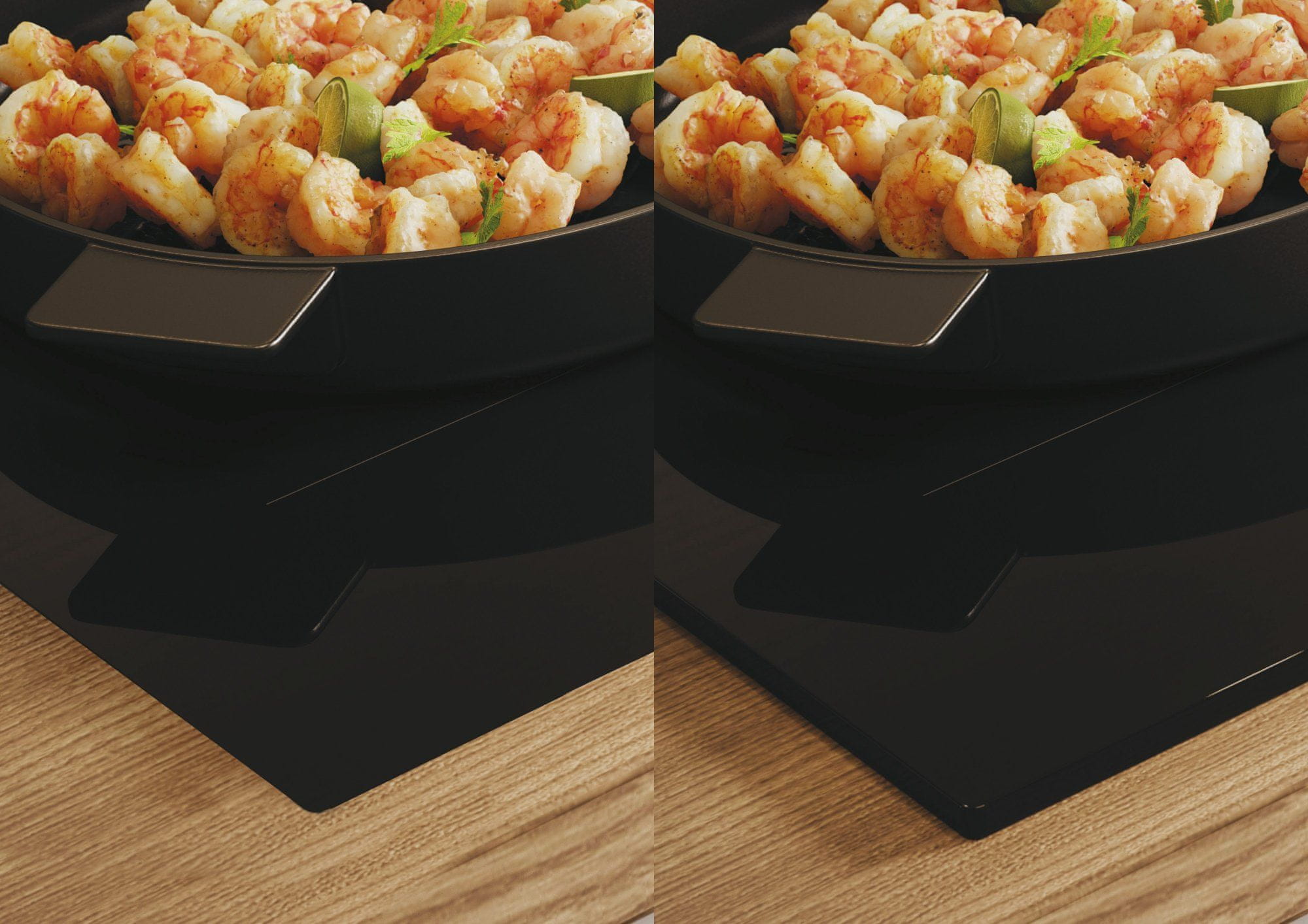 Kada želite postići višu ili nižu temperaturu, samo pomaknite posudu gore ili dolje i razina snage automatski će se promijeniti. Na taj način možete jednostavno prebacivati se između 3 zone zagrijavanja. Dio visoke snage možete koristiti za kuhanje, dio srednje snage za općenito kuhanje, a dio niske snage za održavanje topline.