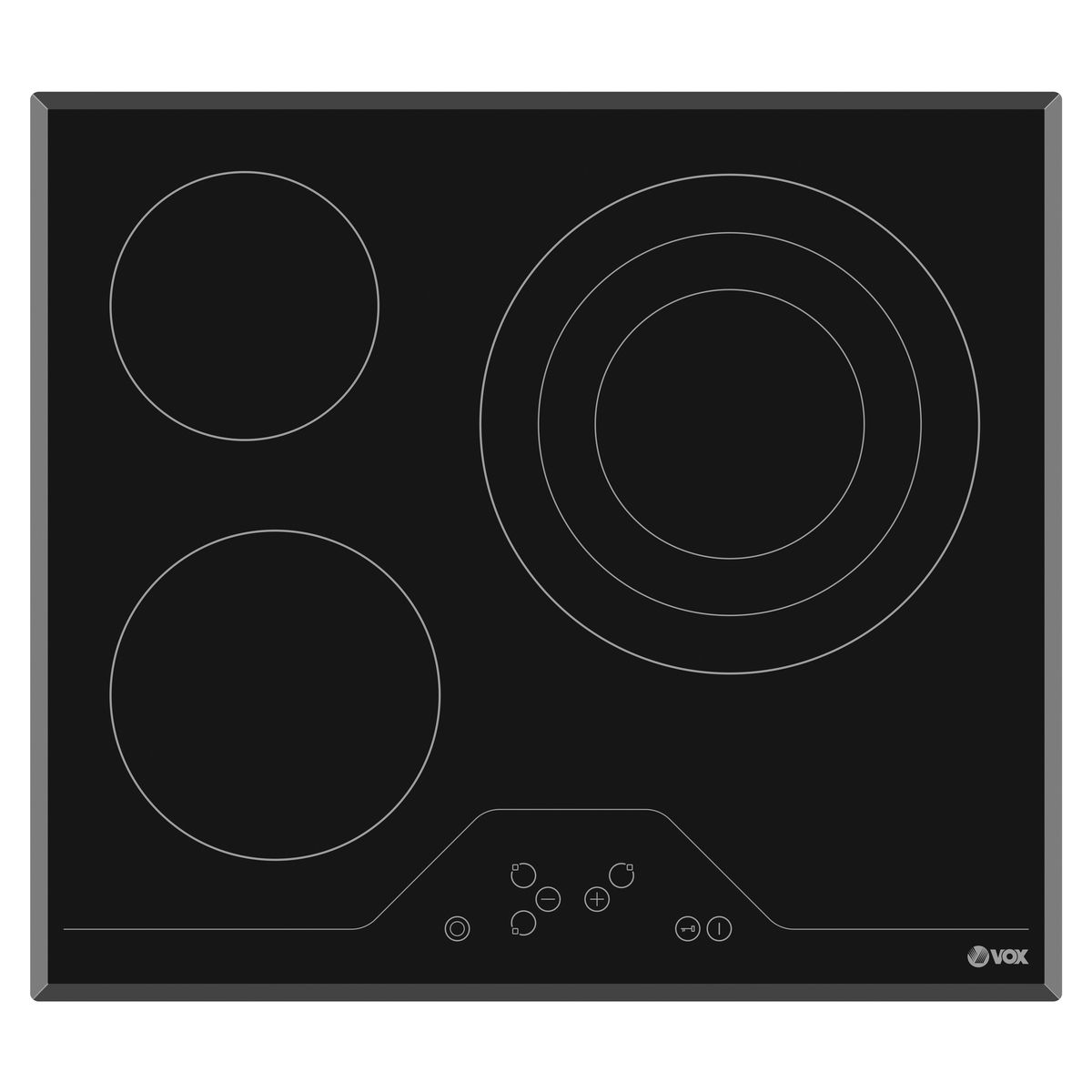 Ugradbena staklokeramička ploča EBC 315 DB marke VOX ima 5 ploča za kuhanje (3 za kuhanje i 2 s mogućnošću proširenja), ukupnu snagu od 6,5 kW, senzorske tipke, sigurnosno zaključavanje i besplatni kabel električnog napajanja.