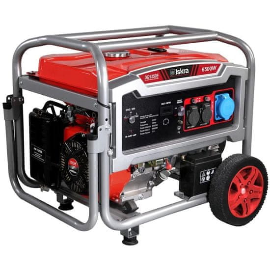 Benzinski agregat Iskra DG9250E čini 4-taktni benzinski motor volumena 420 cm³. Može se pohvaliti maksimalnom izlaznom snagom od 6500 W i maksimalnim kapacitetom motora od 9 kW. Zahvaljujući dobro osmišljenom dizajnu, uređaj može neprekidno raditi 8 sati s punim spremnikom (25 l). Električna struja je 26 A.