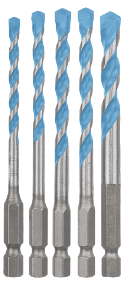 Set uključuje 5 HEX-9 MultiConstruction svrdla, koja omogućuju precizno bušenje u nekoliko materijala. Promjeri svrdla su 4, 5, 6, 6 i 8 mm.