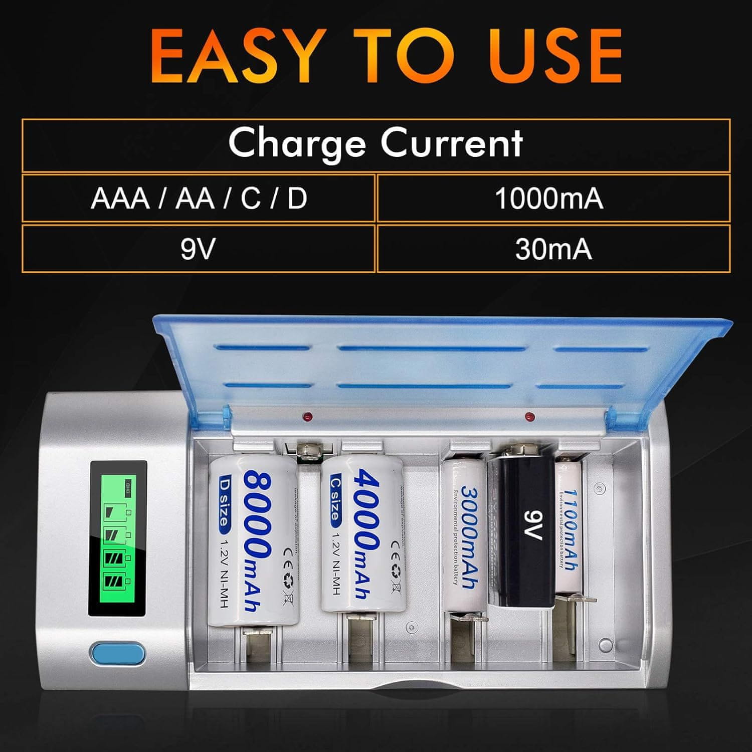 Punjenje AA/AAA/SC/C/D/9V baterija Podrška za različite vrste baterija čini naš punjač iznimno svestranim. Bez obzira na to kakve baterije imate, možete ih puniti jednim uređajem.