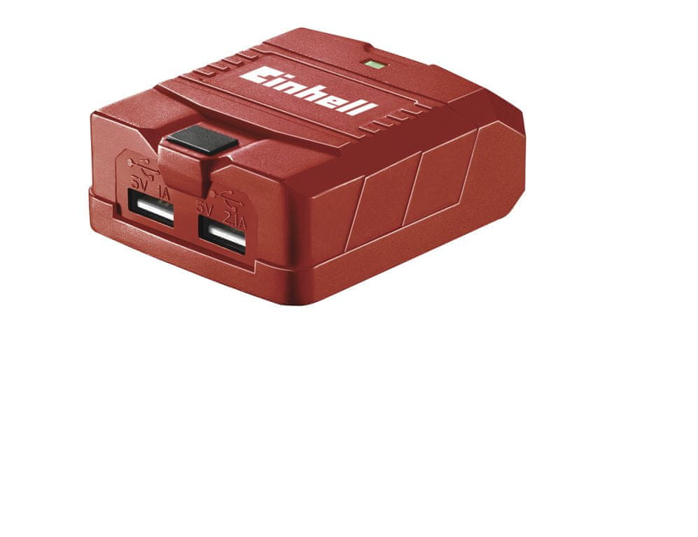Adapter Einhell TE-CP 18 Li USB je praktičan dodatak za baterije Power X-Change, koji se može upotrebljavati za punjenje telefona, tableta, MP3 prijemnika. Ima 2 USB ulaza, te može puniti 2 naprave odjednom. Jedan od utora omogućuje brzo punjenje sa strujom od 2,1 A. Naprava je bez punjača i baterije – može se nadoplatiti. Cijeli opis