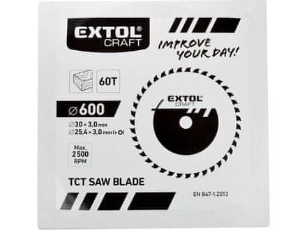 Pilna ploča s SK oštricama Extol Craft (19128) pila s SK oštricama, 600×3.0×30mm Glavni tehnički parametri: Tehnički parametri: 600×3.0×30mm Dodatni parametri: 60T, širina SK oštrice 3.8mm