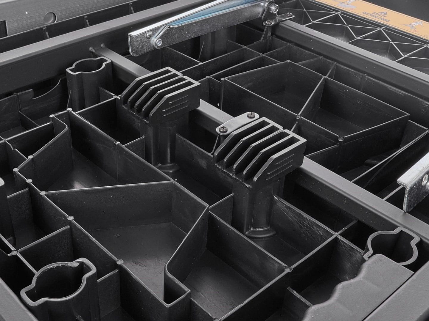 - Funkcionalnost 7u1: stol i kolica kombiniraju sedam funkcija u jednom alatu: radni stol, pila, pila, postolje, transportna kolica, stalak za alat, prijenosna radna stanica i višenamjenska radna površina.