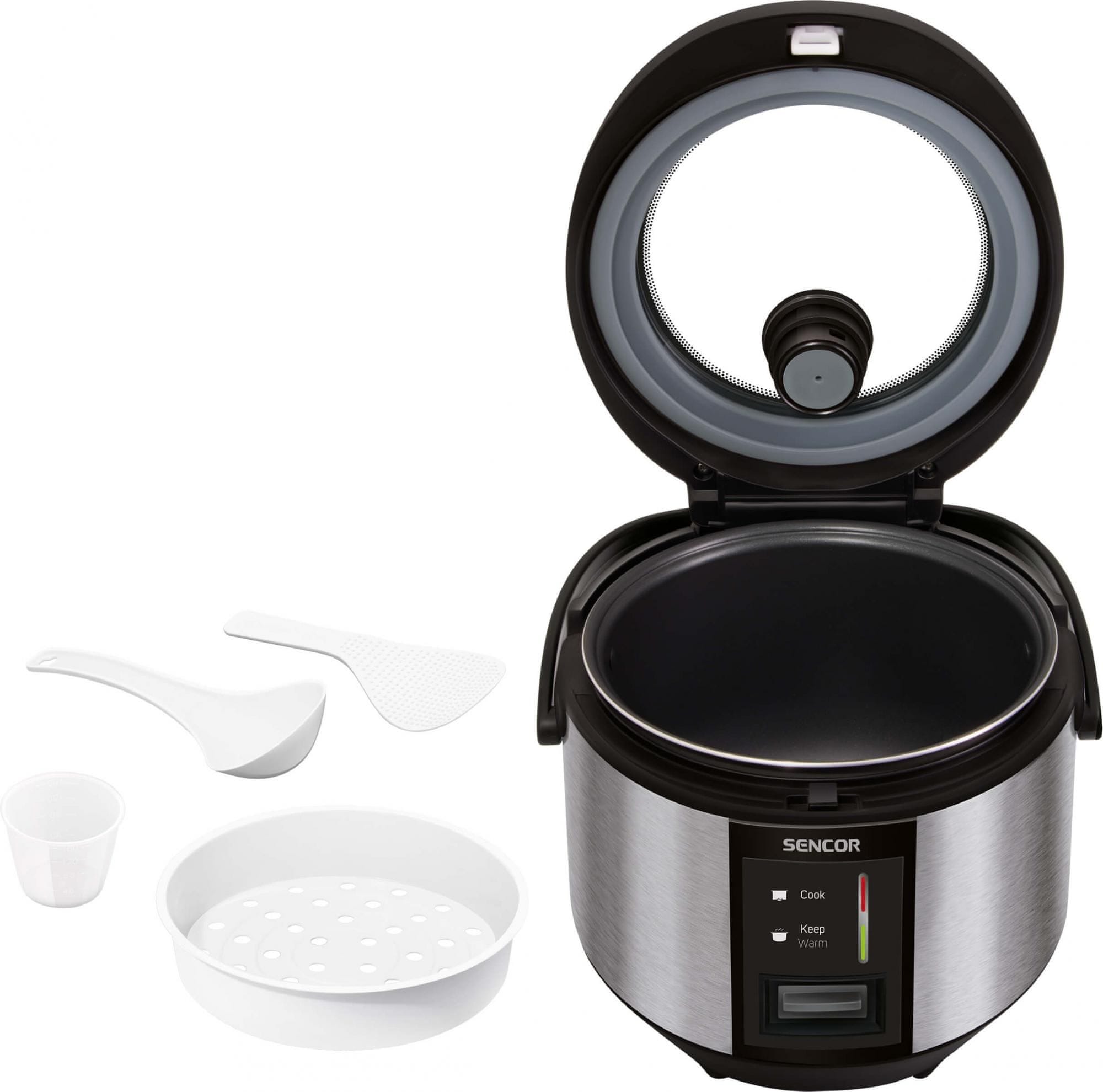 Aparat za kuhanje riže volumena 1,8 l izrađen od elegantnog crvenog nehrđajućeg čelika, oblikovan tehnologijom ravnomjerne distribucije topline. Sencor SRM 1890SS ima poseban izlazni parni ventil i učinkovito sprječava neželjeno izlijevanje tijekom kuhanja. Pripremite do 1500 g riže u loncu, a oduševit će vas funkcija Keep Warm ili nogice protiv klizanja.