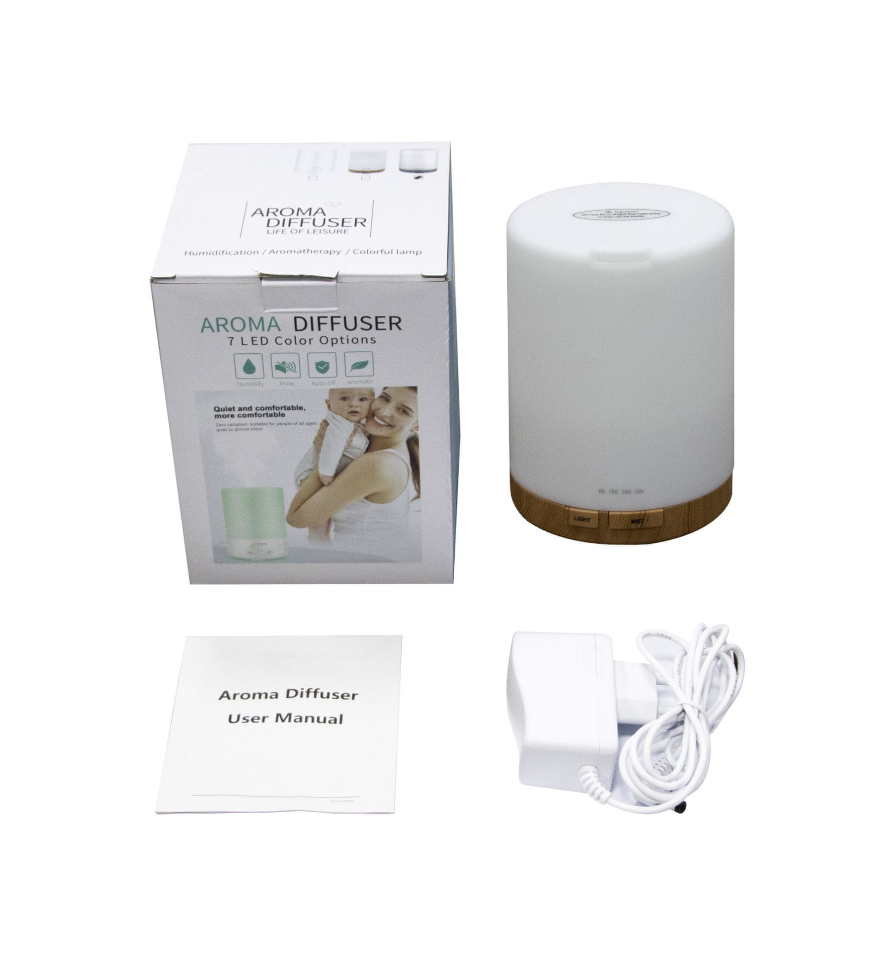 Difuzor je dopunjen s LED rasvjetom u boji, koja nudi do sedam različitih boja.