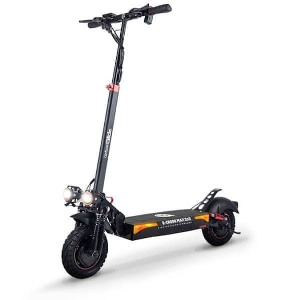 E-Cross MAX 2×2 2. generacije ponosi se vrlo širokom stajaćom površinom i potpuno je ovješen, što osigurava izuzetnu udobnost. Prednja vilica ima 4 opruge, a stražnja vilica 2 opruge, što omogućuje glatku vožnju čak i po zahtjevnijim podlogama.