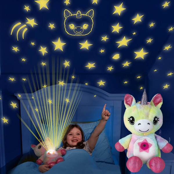 Mormark Plišani jednorog s projektorom zvjezdanog neba, svjetleća igračka za spavanje djece | STARBEAR