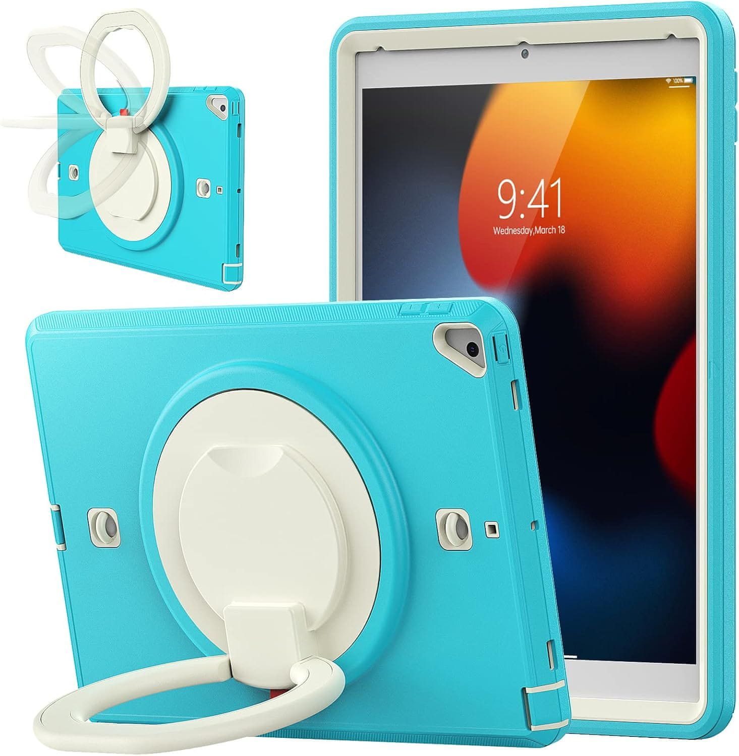 Nikcorp Oklopna maska za iPad 9/8/7 10.2" s rotirajućim postoljem od 360°, troslojna zaštita i držač za ruku, plava