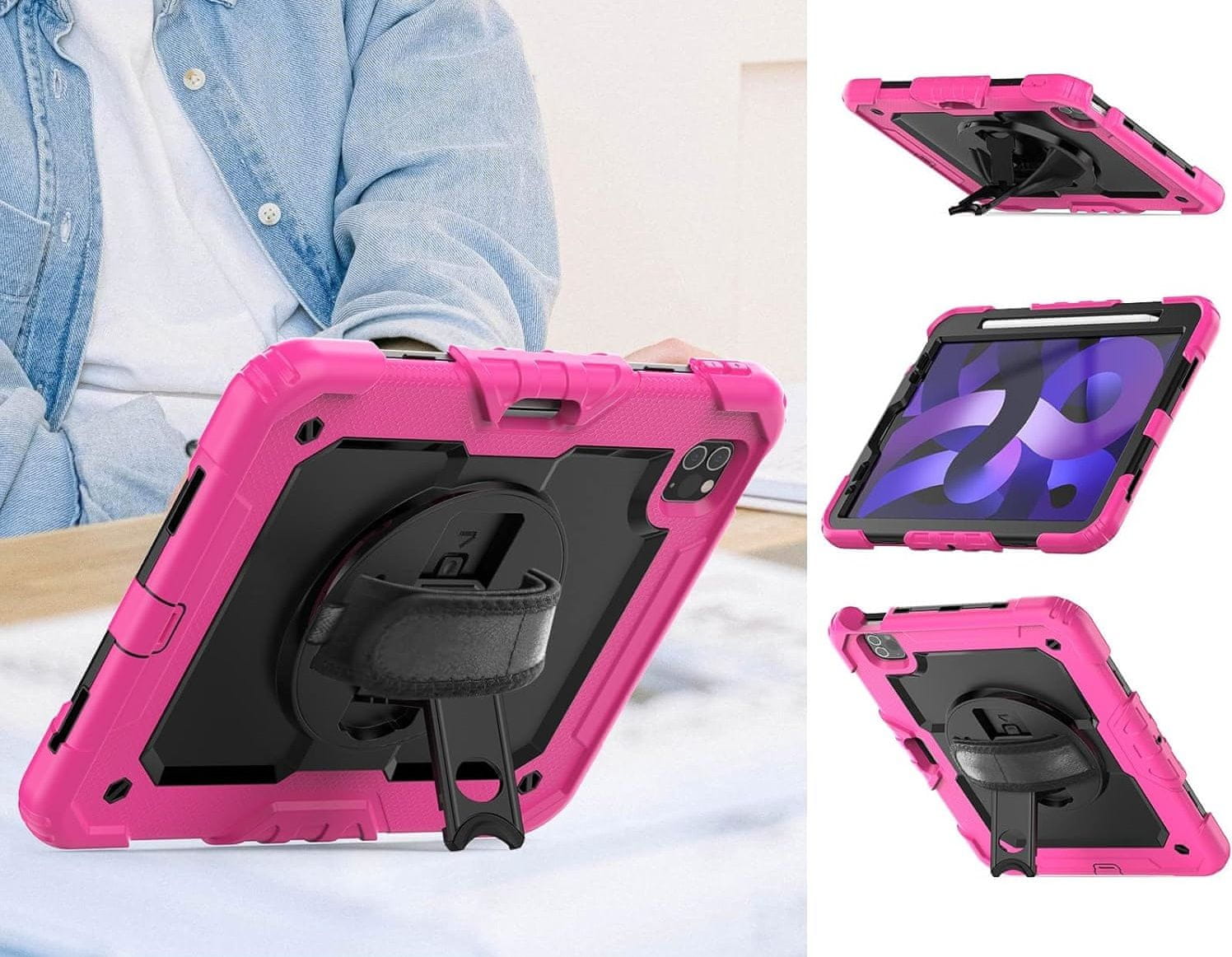 Nikcorp Robusna zaštitna maska za iPad Pro 11/Air 5/4 s rotirajućim stalkom, ručkom i naramenicom, roza