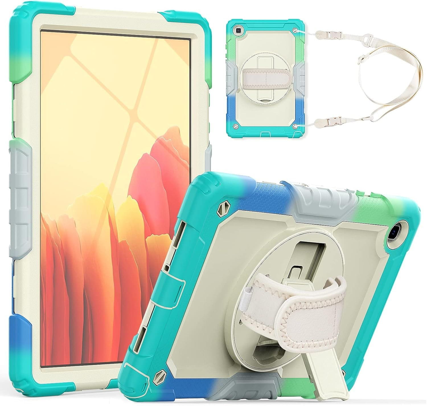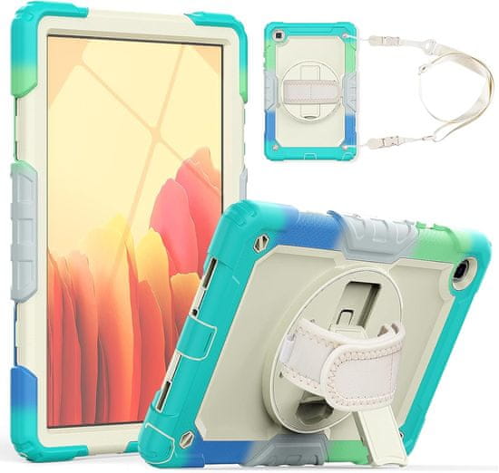 Ova futrola pruža vašem uređaju visoku razinu zaštite. Sastoji se od tri sloja: plastičnog kućišta od PC-a i mekog silikonskog stražnjeg dijela, koji štiti tablet od ogrebotina, udaraca i vibracija tijekom svakodnevne upotrebe. Praktična futrola ima ugrađeni, sklopivi stalak koji se okreće za 360°, nudeći više kutova korištenja, što čini upotrebu još udobnijom. Precizno izrađeni izrezi osiguravaju savršeno pristajanje uz priključke i jednostavan pristup svim gumbima. Futrola je također opremljena podesivim i odvojivim remenom za rame, što osigurava maksimalnu prenosivost, bez obzira gdje se nalazite. Zahvaljujući ovom svestranom kućištu, vaš će uređaj biti siguran tijekom planinarenja, izleta i drugih aktivnosti na otvorenom.