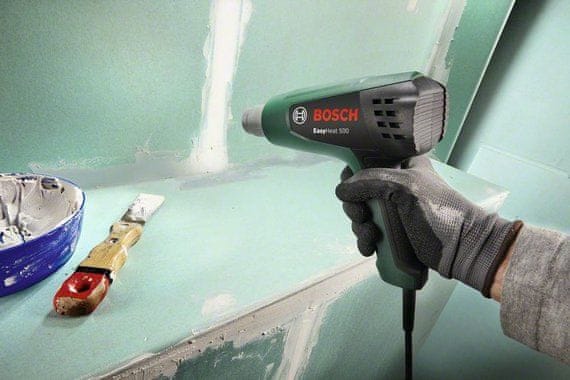 Pištolj na vrući zrak ima kompaktni dizajn za jednostavnu uporabu i jednostavno upravljanje. Bosch 500 EasyHeat ima stražnji dio koji ne klizi i pruža veću stabilnost. Različite mlaznice mogu obavljati brojne zadatke. Radna temperatura do 500 °C.