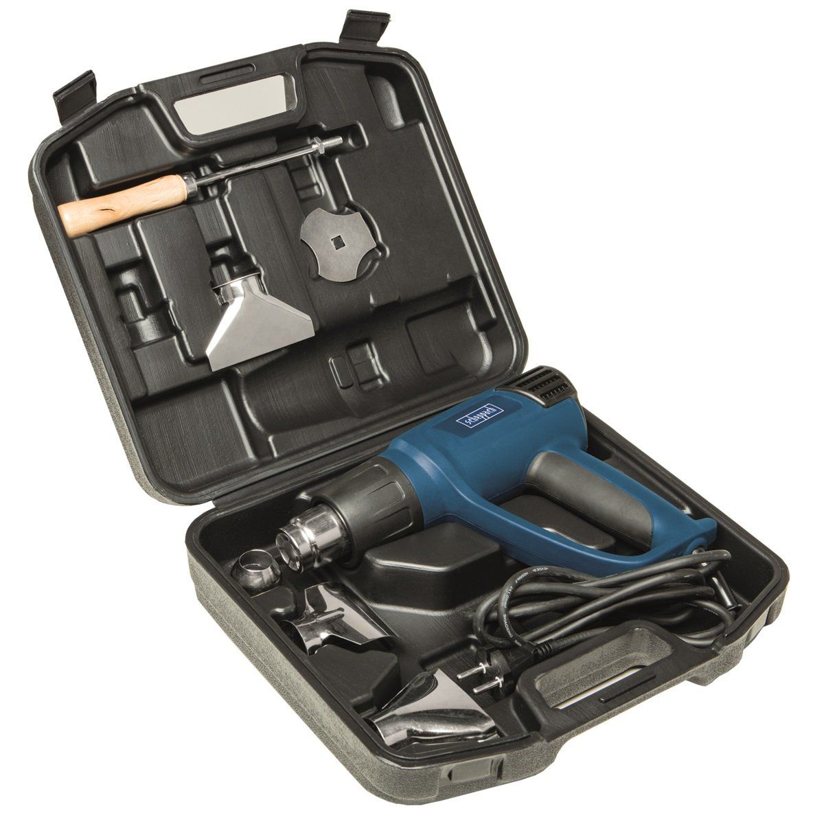 Električni pištolj za vrući zrak za uklanjanje lakiranih boja s drva, kao i za obradu plastike. Promjenjivi raspon temperature i protok zraka u 2 razine s najviše 500 °C i l / min. Motor snage 1800 W, radi kao da je priključen na električnu mrežu s 230 V. Scheppach HG1800 fen za vrući zrak ima masu samo 0,84 kg.