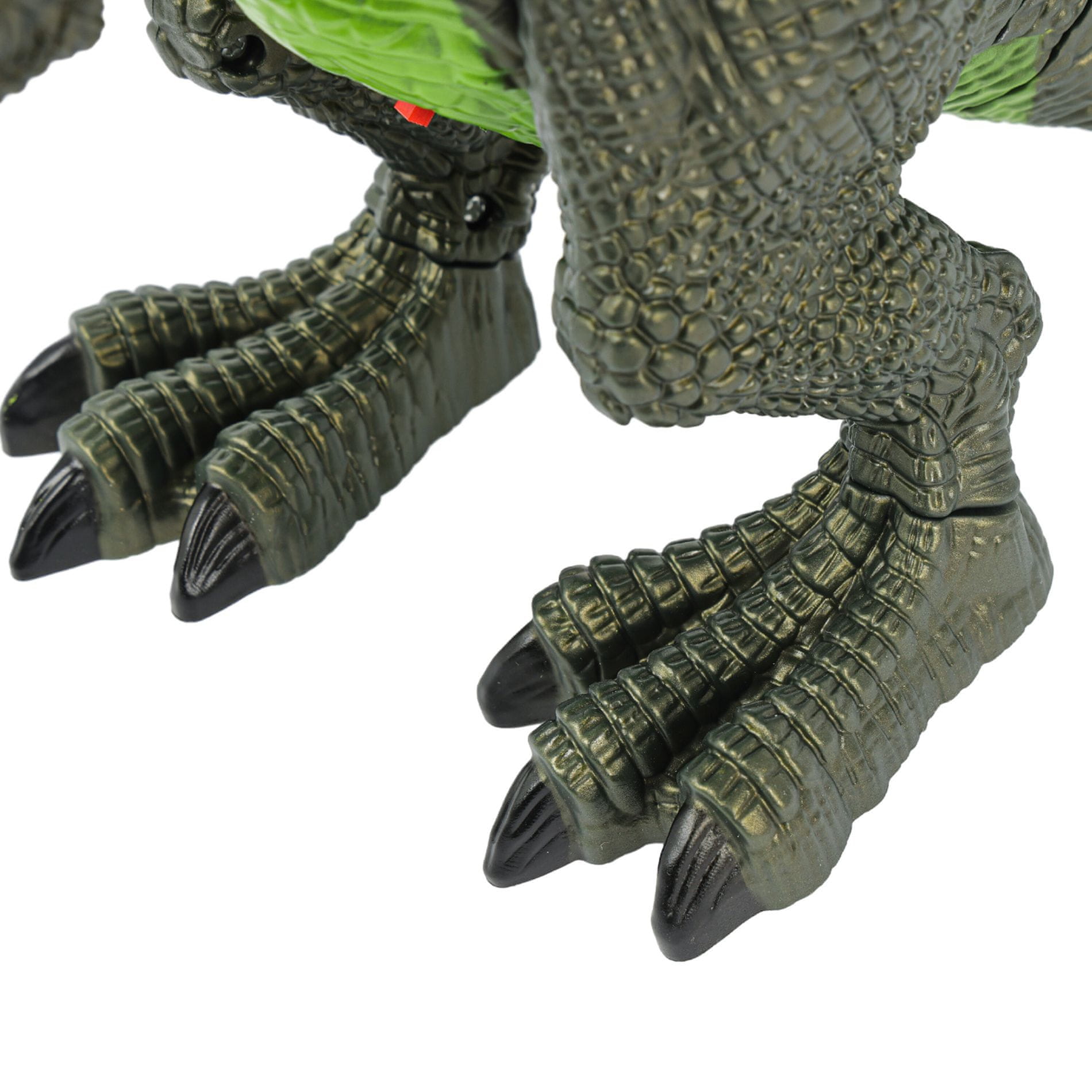 Nakon uključivanja, dinosaur će zarežati, oči će mu zasvijetliti, a iz usta će mu izlaziti para.