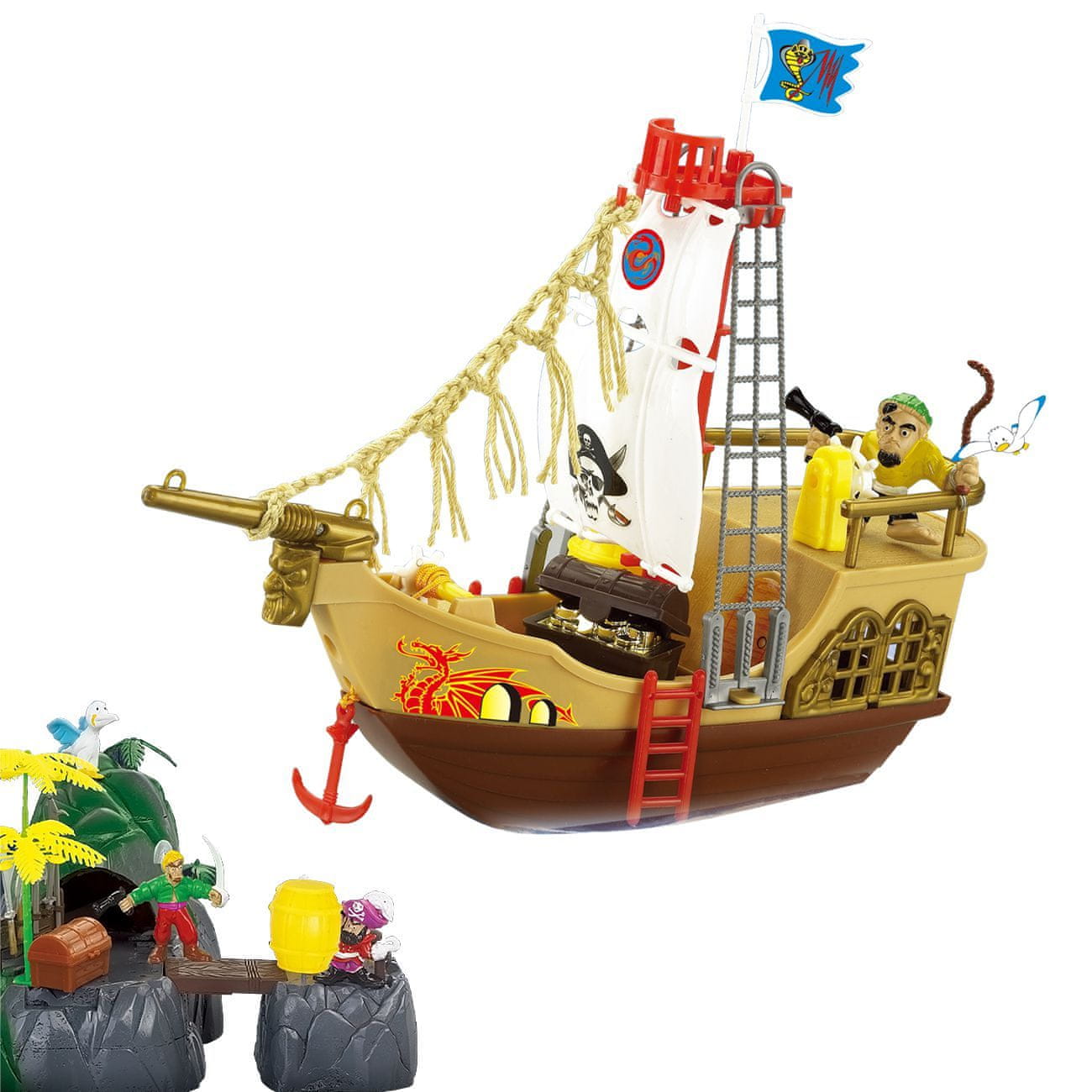 S visoke promatračnice gusar osmatra daleku pučinu. Hejjjjjjj! Brod na vidiku! Nema vremena za ljenčarenje, strka na palubi, podigni jedra i izvuci sidro! Usredotoči se na metu, postavi topove i pripremi se za paljbu: čini se da je onaj brod pun blaga! Okreni kormilo i pramcem kreni ravno na metu. Pripremi užad i kuke. Sve je spremno za napad. Uz ovaj fantastični gusarski brod igra će se pretvoriti u pravu pustolovinu a kreativnosti i mašti nema granica. Ukrcaj se odmah!
