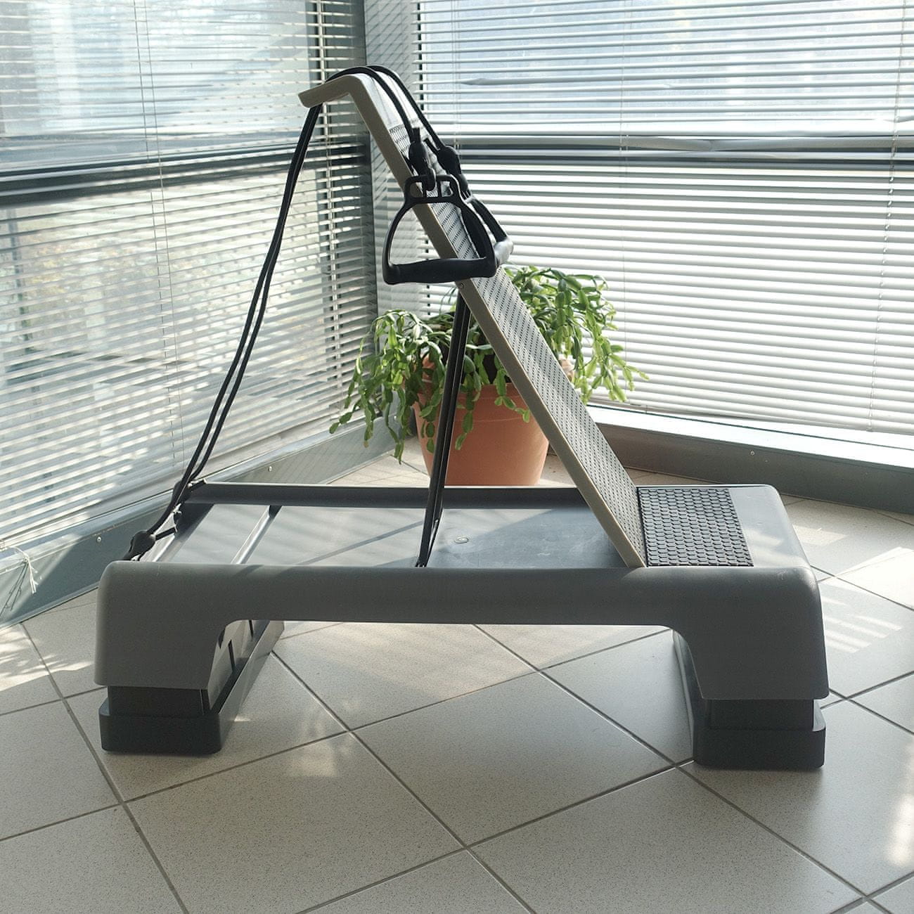 Višenamjenski aerobik steper i klupa za fitnes s protukliznom površinom za vježbanje cijelog tijela. Max nosivost: 100 kg. U setu: 2 elastične trake. Podešavanje visine 16 cm, 21 cm ili 26 cm. Dimenzije proizvoda: 91 × 16 × 37.5 cm.