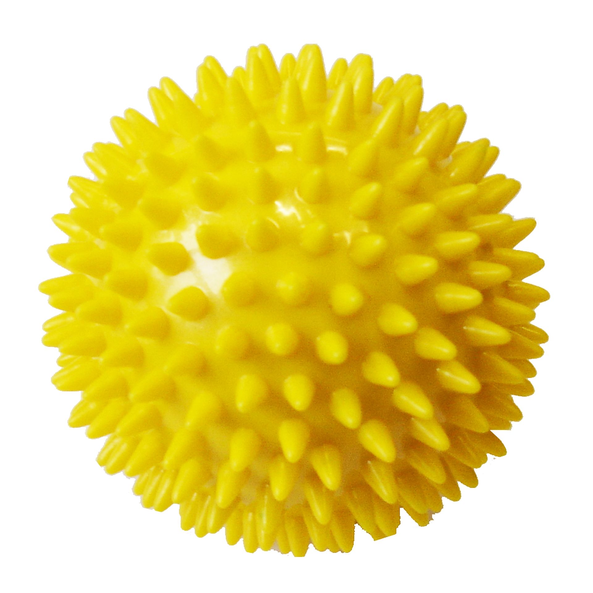 Lopta za masažu „JEŽ“ 7,5 cm, za učinkovitu masažu mišića, pakirana u kutiji, žute boje.