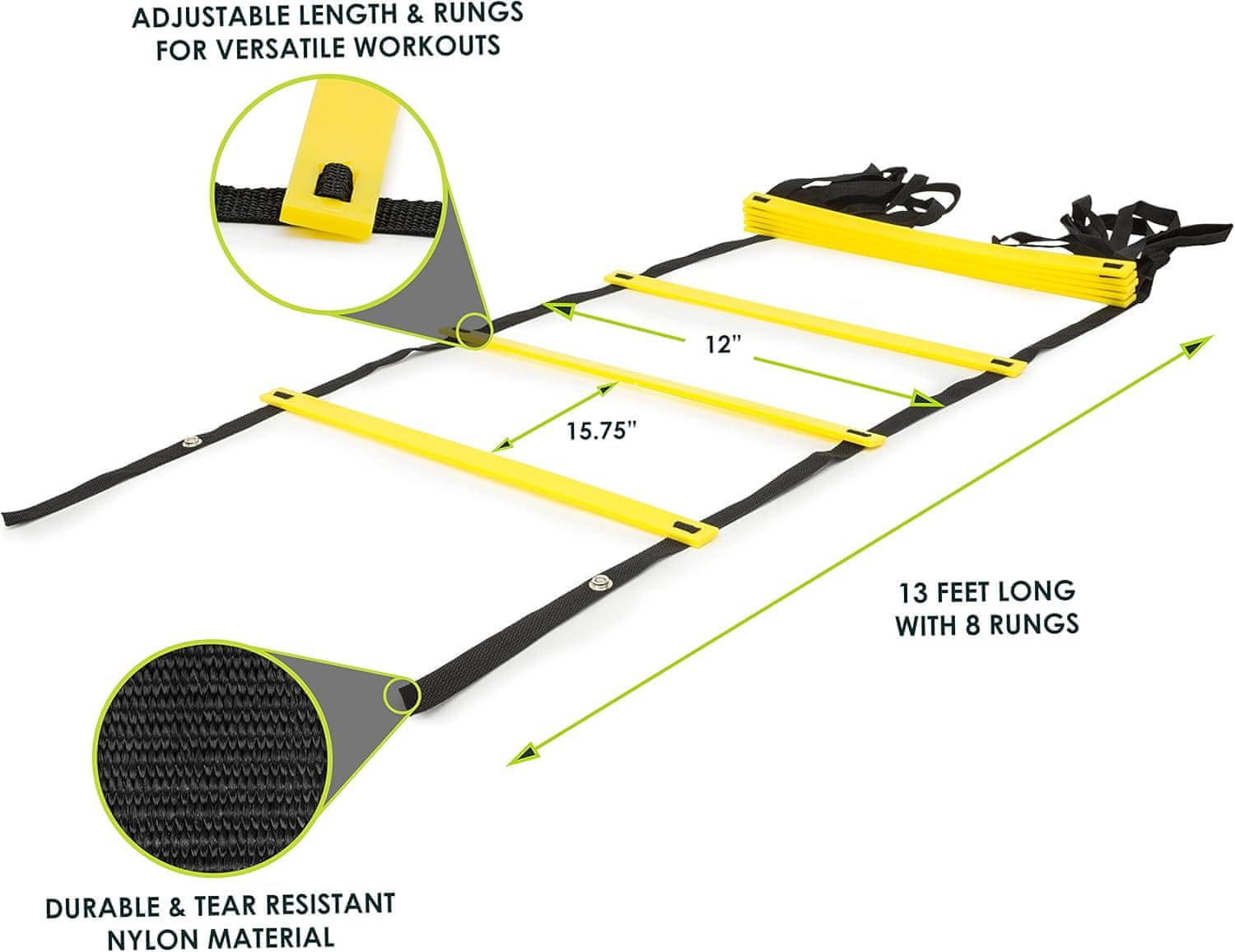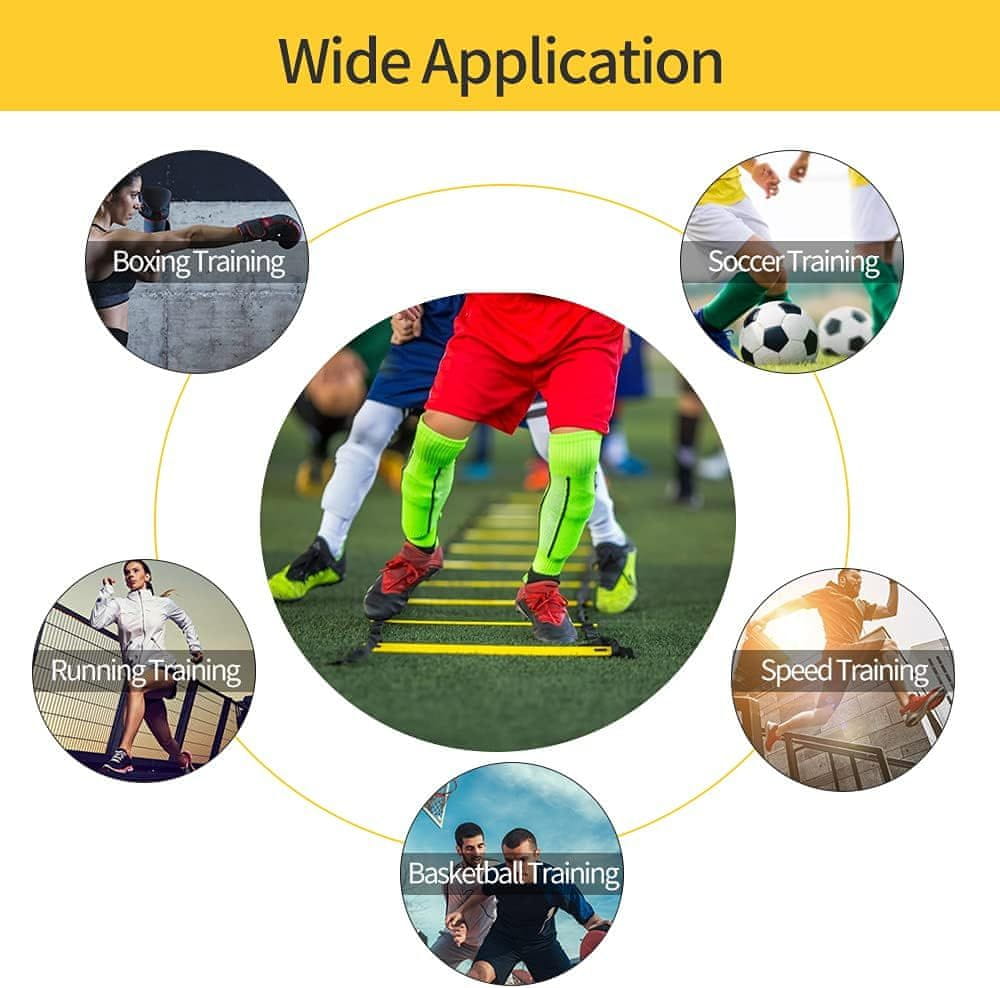 Netscroll Trening ljestve za brzinu i agilnost, komplet 6 prečki, podesive, s čeličnim klinovima i torbom, ljestve za nogomet, košarku, tenis i fitness, SpeedStraps