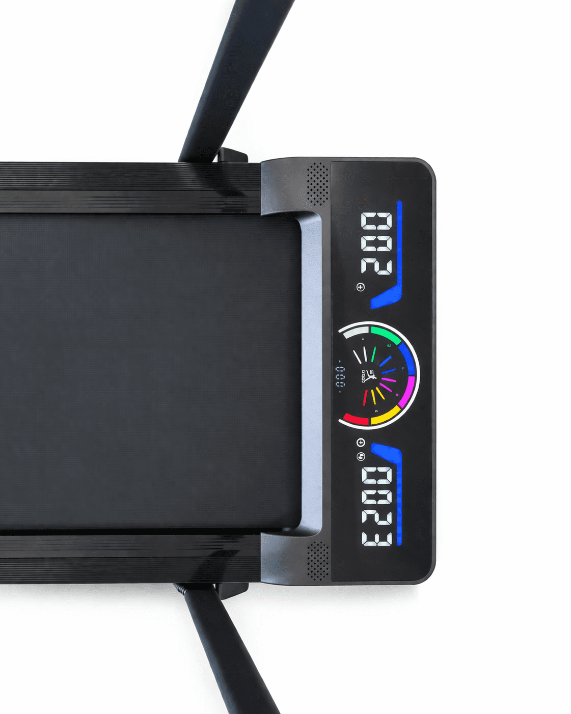 Jednostavan LED zaslon s tri odvojena segmenta prikazuje sve ključne pokazatelje trčanja, a veliki brojevi olakšavaju čitanje tijekom trčanja. Prikazani parametri uključuju vrijeme, brzinu, udaljenost i potrošene kalorije.