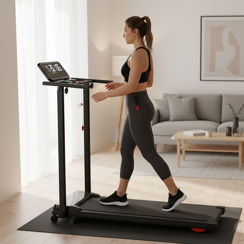 Sklopiva električna traka za trčanje nudi praktično rješenje za održavanje forme bez napuštanja doma. Zahvaljujući kompaktnom dizajnu, s visinom od samo 12 cm kada je sklopljena, uređaj se lako uklapa čak i u manje stanove, omogućujući pohranu ispod kreveta ili uz zid. Dva načina rada – hodanje sa sklopljenom ručkom (upravljanje daljinskim upravljačem) i trčanje s rasklopljenom šipkom – pružaju fleksibilnost i prilagodbu individualnim potrebama korisnika. Velika površina trake za trčanje (100 × 38,5 cm) osigurava udobnost i sigurnost tijekom vježbanja. Raspon brzine od 1 do 12 km/h omogućuje lagane šetnje i intenzivno trčanje. Tihi motor snage 1 KS omogućuje korištenje trake u bilo koje doba dana, bez narušavanja mira ukućana. Zaslon prikazuje vrijeme, udaljenost, brzinu, potrošene kalorije i puls, a senzori u ručkama omogućuju stalno praćenje otkucaja srca. Putem aplikacije FitShow, dostupne za Android i iOS, možete upravljati treningom izravno s telefona. Bluetooth povezivost omogućuje spajanje na zvučnike i aplikacije za vježbanje koje pružaju dodatnu motivaciju. Ovaj sveobuhvatni uređaj idealan je za sve koji cijene udobnost, funkcionalnost i učinkovitost.