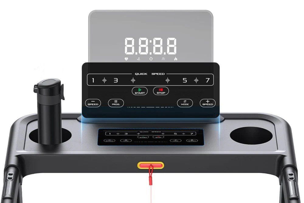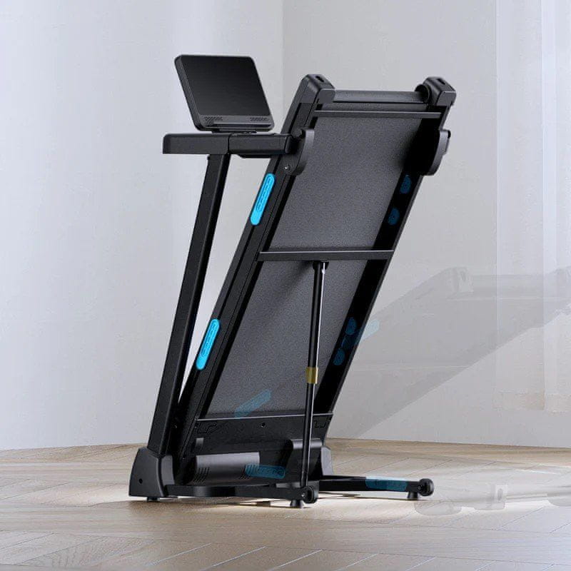 Podesivi nagib – 3 razine (0 %–3 %–6 %) za bolje sagorijevanje kalorija i masti (do 40 % veća učinkovitost). Traka za trčanje i hodanje u jednom uređaju Ublažavanje udaraca – 5-slojna traka sa 6 silikonskih amortizera štiti zglobove tijekom vježbanja. Pametno praćenje – LED zaslon, senzor otkucaja srca i besplatna podrška aplikacije MERACH. Tih i prostorno učinkovit – razina buke 40 dB, sklapanje jednom rukom, držač za tablet. Stabilan i univerzalan – nosivost 120 kg, površina trake 1080 × 420 mm, brzina 0,8–12 km/h. Spalite više kalorija Tri razine nagiba Traka za trčanje Merach s podesivim nagibom nudi tri razine (0 %–3 %–6 %), koje olakšavaju sagorijevanje masti! U usporedbi s tradicionalnim trakama, povećava učinkovitost sagorijevanja masti do 40 %. Učinkovitiji trening LED zaslon i daljinski upravljač Brzinu možete jednostavno podesiti putem daljinskog upravljača ili izravno na zaslonu. LED zaslon prikazuje sve važne podatke u stvarnom vremenu – vrijeme, kalorije, brzinu, udaljenost i puls. Sigurna i udobna vježba 5-slojna traka i 6 silikonskih amortizera Sklopiva traka za trčanje opremljena je 5-slojnom površinom i 6 silikonskih amortizera koji učinkovito ublažavaju udarce te štite koljena i gležnjeve. Prostrana površina i stabilnost Široka traka (1080 × 420 mm), raspon brzine od 0,8 do 12 km/h, maksimalna nosivost 120 kg. Ugrađeni senzor pulsa i sigurnosne ručke osiguravaju siguran i udoban trening. Jednostavno premještanje Ugrađeni dvosmjerni kotač koristi princip poluge, što omogućuje lako premještanje uređaja na željeno mjesto. Praktično sklapanje U složenom položaju hidraulična potpora preuzima više od 90 % težine, što omogućuje sklapanje jednom rukom. Za rasklapanje je dovoljno pritisnuti papučicu – traka se automatski otvara unutar 5 sekundi. (Dimenzije sklopljene trake: 65 × 70 × 125 cm) Niska razina buke Ugrađena zvučno izolirana traka održava radnu razinu buke na svega 40 dB, što omogućuje tihu vježbu u bilo koje doba dana.