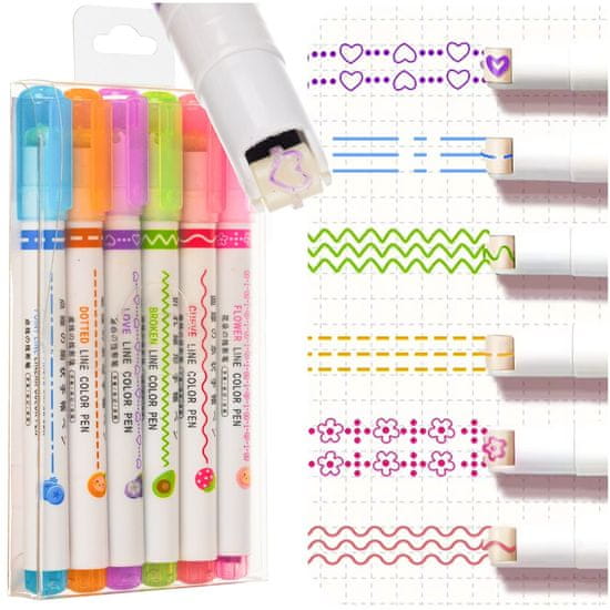Stvorite prekrasna umjetnička djela i začinite svoje projekte uz Set od 6 markera s različitim ukrasnim uzorcima. Ovaj jedinstveni set nudi markere s inovativnim vrhovima koji vam omogućuju crtanje atraktivnih uzoraka i linija bez napora.