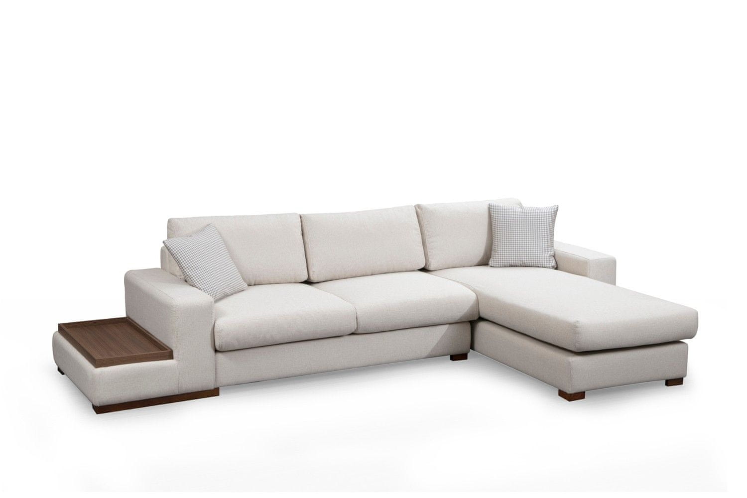 Okvir: Iverica od bukve Tkanina: 100% poliester Duljina: 312 cm x 194 cm Širina: 95 cm Visina: 85 cm Veličina tablice: Duljina: 40 Širina: 89 cm Visina: 29 cm Pjena: 18 dns tvrda siva pjena – opruga – 24 dns pero za sjedenje 60% odsječena pjena – 40% silikonska pjena za leđa Jastuk: 60% odsječena pjena – 40% silikonska pjena Veličina: 45 cm x 45 cm (2 komada) Prijenosni jastuk za sjedenje i leđa Tkanina Noge: drvene noge oraha Visina pjene: 26 cm, Broj paketa: 4 103 × 30 × 61 cm – 5 kg – (1 komad) 147 × 105 × 85 cm – 30 kg – (1 komad) 85 × 200 × 85 cm – 30 kg – (1 komad) 104 × 82 × 57 cm – 20 kg – (1 komad)