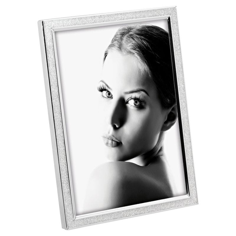 Sjajni metalni okvir za fotografije u bijeloj boji s BLJESKOVIMA (sitnim kamenčićima) za fotografiju dimenzija 10×15cm talijanske tvrtke Mascagni.