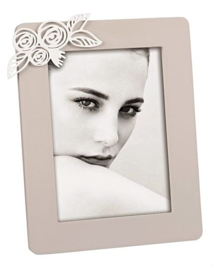 Okvir za fotografije 13×18cm talijanske tvrtke Mascagni Casa. MDF materijal, sive boje s nanošenjem bijelih cvjetova u gornjem kutu. Okvir je dizajniran za postavljanje i vješanje okomito. Pakirano u poklon kutiju.