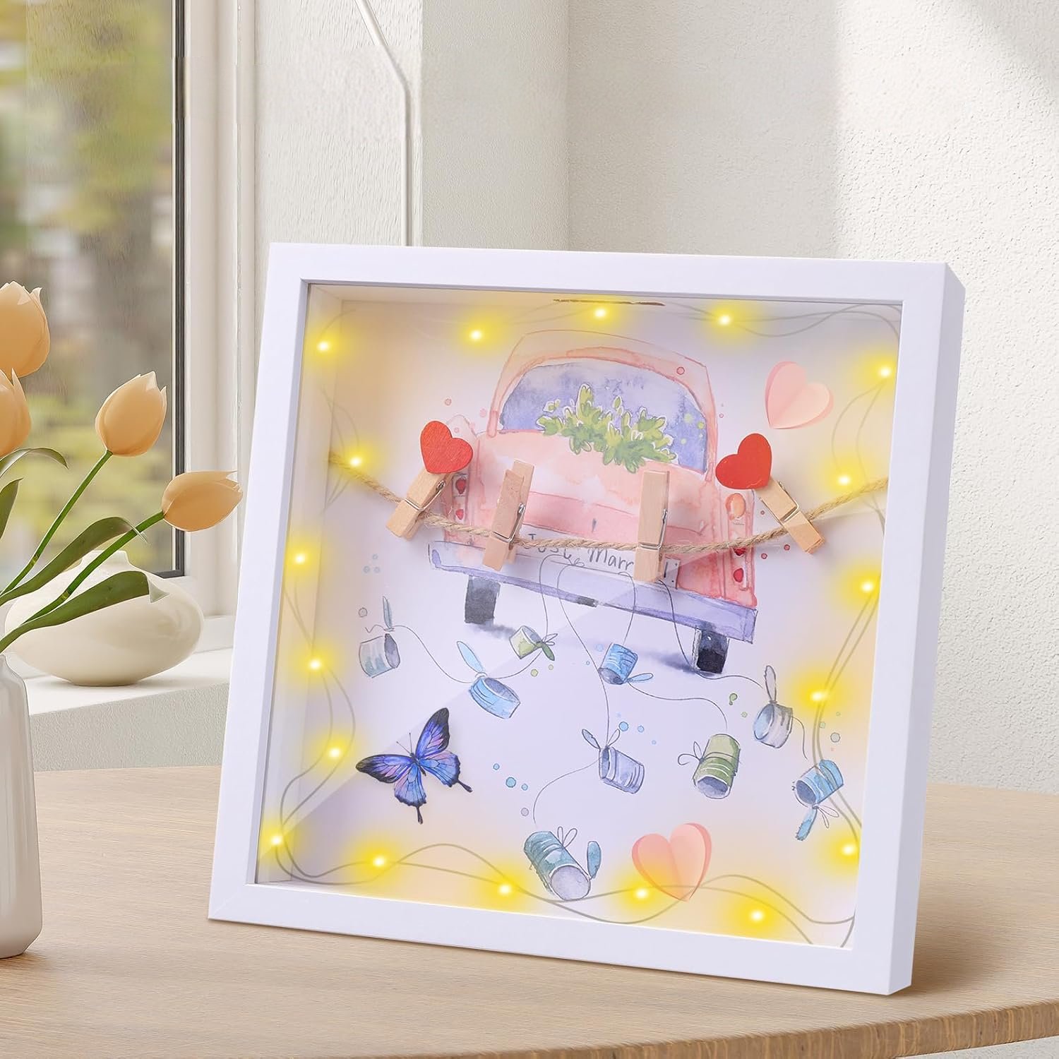 Otkrijte čaroliju uspomena zahvaljujući jedinstvenom 3D okviru za slike s funkcijom spremnika 2u1. Ovaj kreativni set dizajniran je za osobe koje žele ovjekovječiti najljepše trenutke života u obliku trodimenzionalne kompozicije. Visokokvalitetni okvir izrađen od drva i prozirne akrilne ploče osigurava trajnost, eleganciju i zaštitu sadržaja bez ostavljanja otisaka prstiju. Okvir dimenzija 22×22 cm omogućuje jednostavno punjenje prostora slikama, suhim cvijećem, ulaznicama, medaljama ili drugim osobnim sitnicama. Set uključuje 8 zamjenjivih uzoraka pozadine koji omogućuju individualno prilagođavanje estetike, a 1-metarska bakrena LED lampica dodaje ugođajno osvjetljenje i naglašava dubinu kompozicije.